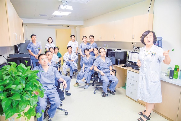 楊小翠(右一)為科室青年醫生授課