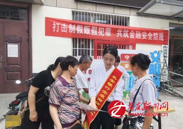 活動期間,該支行在支行大廳布置宣傳臺,通過擺放不宜流通人民幣票樣手冊,LED播放反假貨幣宣傳視頻,組織客戶進行反假線上答題等方式,多方位、多角度宣傳反假貨幣知識。同時,充分利用客戶進網點辦理業務等候時間發放反假貨幣宣傳折頁,讓客戶在辦理業務的同時提高對人民幣的認識,保護好自身利益。抽調3名業務骨干組建反假宣傳小隊,走進社區向周邊群眾開展反假貨幣宣傳,打通反假貨幣宣傳的“最后一公里”,推動反假貨幣宣傳工作實現深度滲透與廣泛覆蓋。