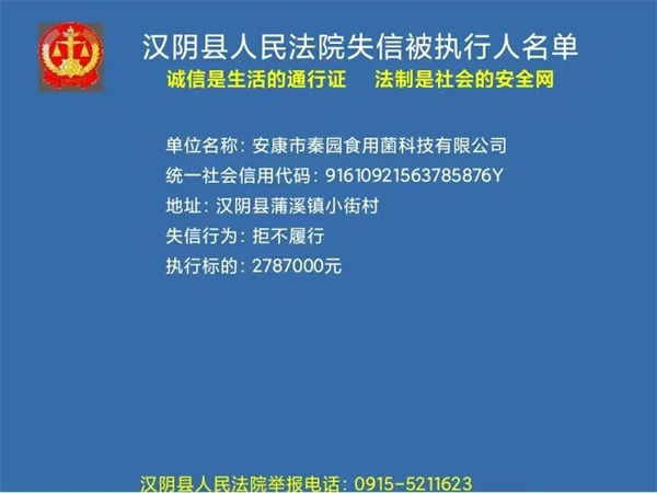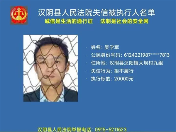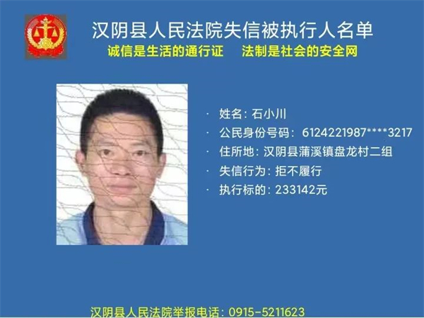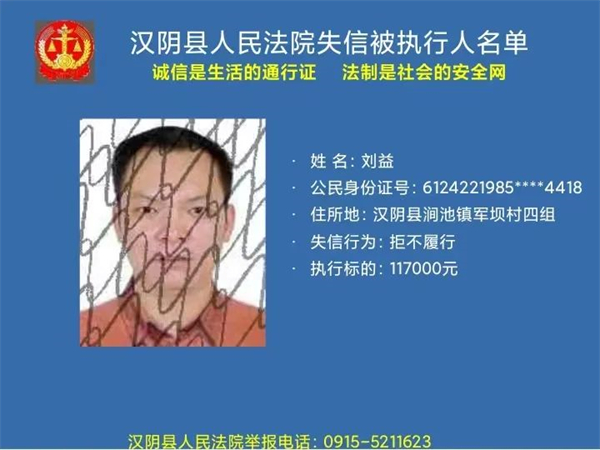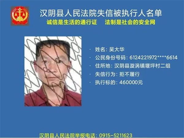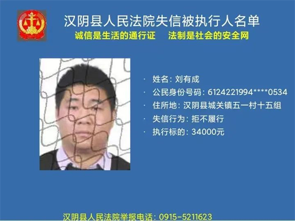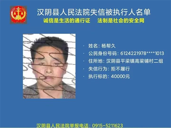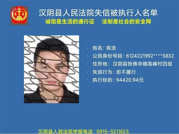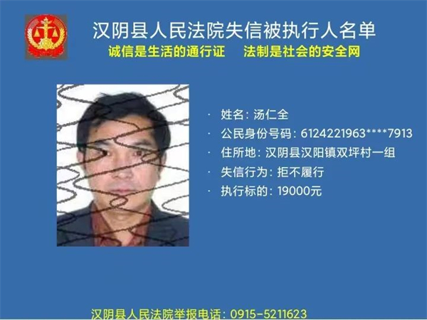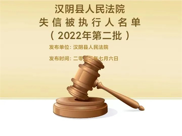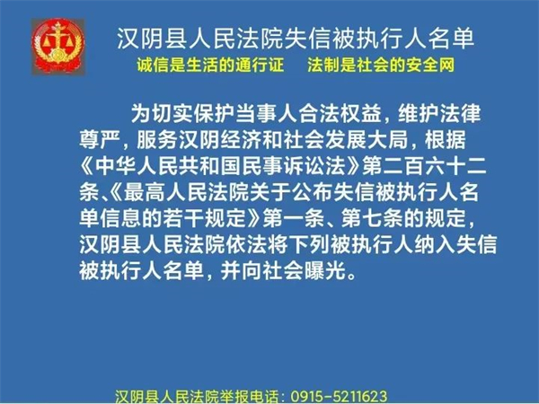 曝光失信 | 漢陰法院失信被執行人曝光名單 (2022年第二批)