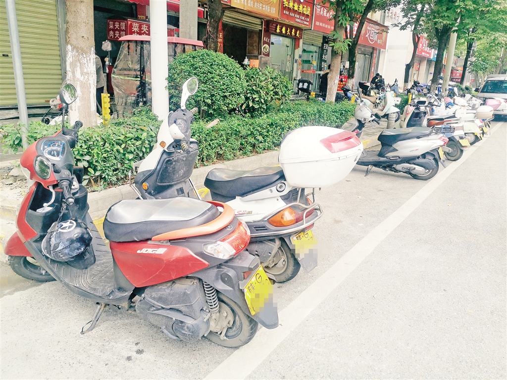 在地處江北的濱江大道上,情況也是如此。西城閣附近一小區正門前,停放的一排電動車、摩托車,行人進入小區需繞過車輛從側面通過。而親水廣場旁的花壇邊,也隨意停放著電動車。“劃了線的停車區明明就在前面幾米遠,但很多人為了省這幾步路,就隨便停在這里,真讓人想不通。”在廣場里休閑的王大爺說。