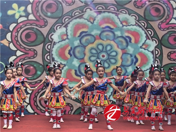 鼓樓小學的學生們表演的舞蹈《苗娃踏歌迎國慶》,以朝氣蓬勃的舞姿和天真爛漫的笑臉,踩著歡快的節拍,表達了少年兒童對祖國生日最可愛的祝福,展現了新時代安康少年積極向上的精神風貌。