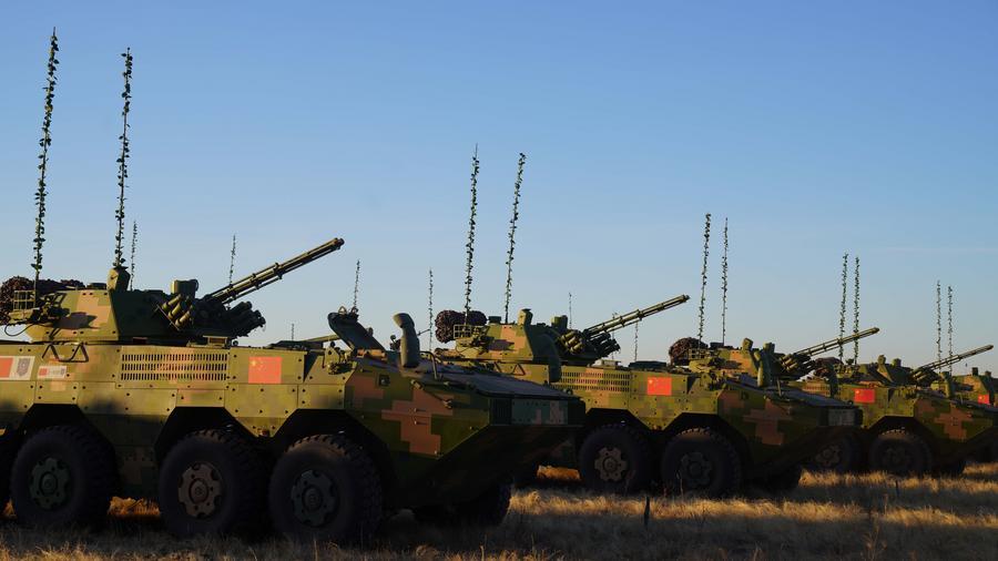 2021年9月20日,在俄羅斯奧倫堡州東古茲靶場舉行的“和平使命-2021”上海合作組織聯合反恐軍事演習開幕式上,中方參演部隊接受檢閱。新華社記者梅世雄攝