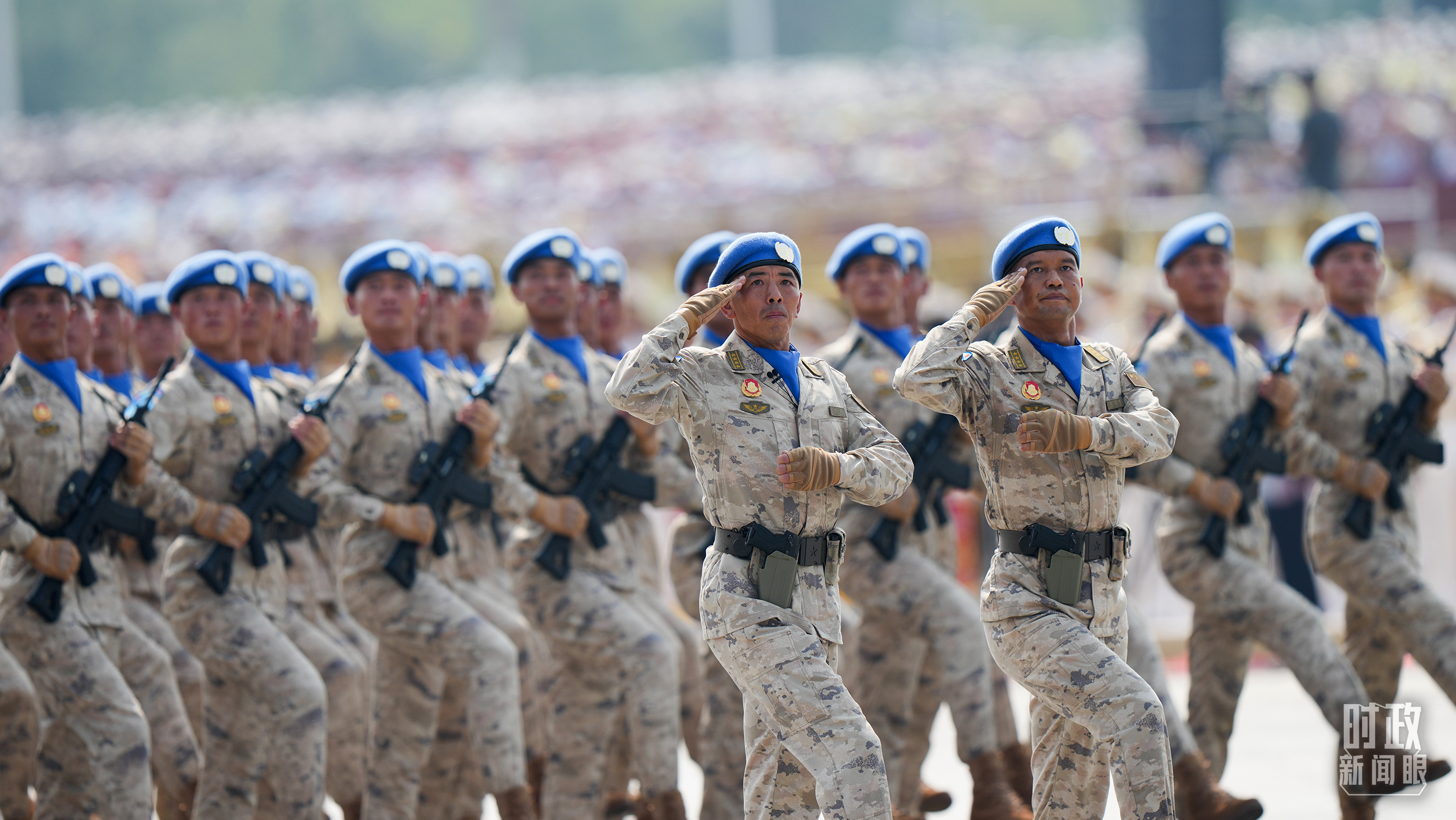 閱兵式上,維和部隊方隊闊步走來。今年是中國軍隊參加聯合國維和行動35周年,累計派遣超過5萬名維和官兵,中國是聯合國安理會常任理事國中派出維和人員最多的國家。“中國藍盔”不懼艱險、不辱使命,以熱血鍛鑄和平盾牌,用行動譜寫大國擔當,已經成為守護世界和平安寧的關鍵穩定力量。