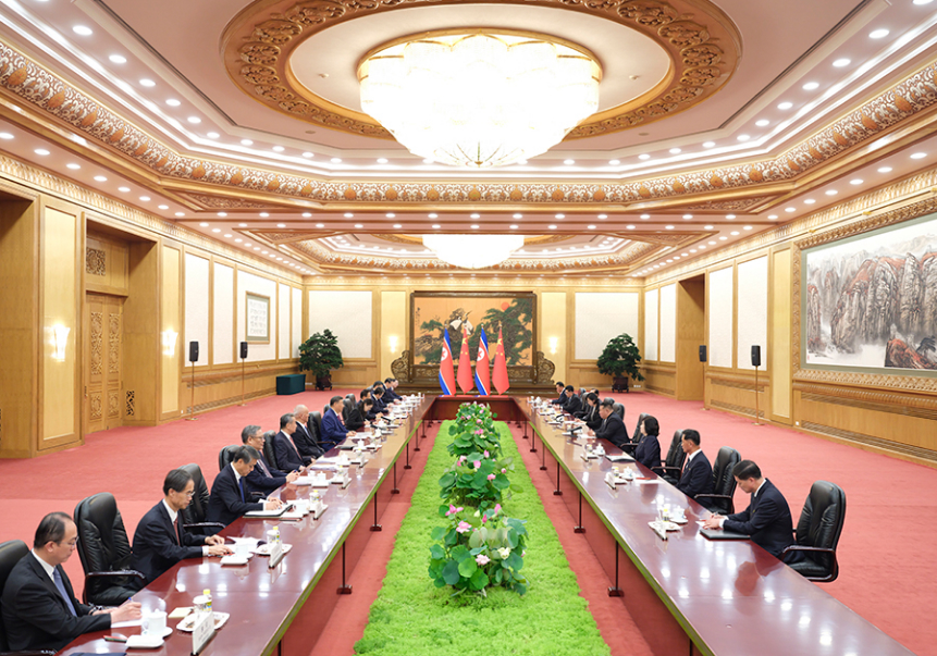 習近平指出,中朝是命運與共、守望相助的好鄰居、好朋友、好同志。中朝友誼源遠流長,兩國都是共產黨領導的社會主義國家,有著共同的理想信念和奮斗目標。金正恩總書記來華出席紀念中國人民抗日戰爭暨世界反法西斯戰爭勝利80周年活動,體現了朝方維護二戰勝利成果的堅定意志,也為中朝兩黨兩國進一步發展友好合作關系提供了重要契機。