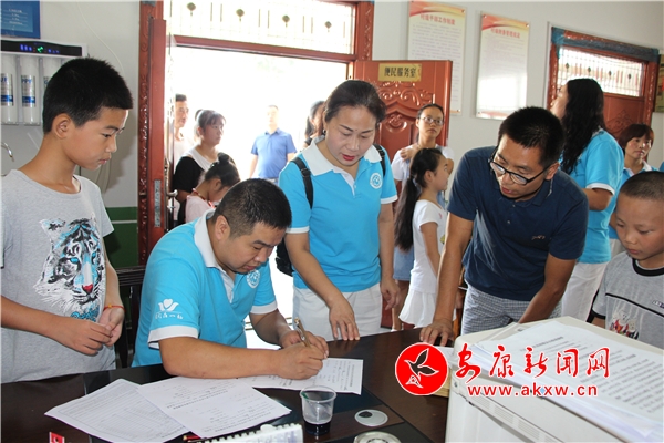 早上9點,會員們準時從協會辦公室出發,天氣雖然炎熱,但擋不住志愿者矯健的公益步伐。到達三里埡村委會后,會員們顧不上休息就快速開始發放助學款,會員先簡要的向受助學生和家長介紹了本次助學款的來源、用途及發放要求。然后,10名受助學生輪流開始填寫回饋信息表、接收愛心資金、合影拍照,會員們細心填寫、核對信息,耐心引導每個孩子和家長簽字,叮囑家長要把愛心助學款用在孩子學習、生活上。愛心款發放結束后,會員們把協會的愛心書包一一發放到10名學生手中,并集體合影。