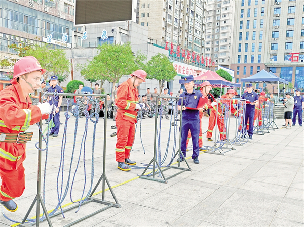 著裝完畢,隊員迅速移步至繩架前。卷結、雙股單結、雙股8字結、蝴蝶結、單椅子扣,5個基礎繩結在指尖翻飛中快速成型。在救援現場,一根繩索、一個繩結,往往是連接生命的紐帶,是救援人員自身防護的“生命線”,也是保障被困人員轉移安全的核心前提。