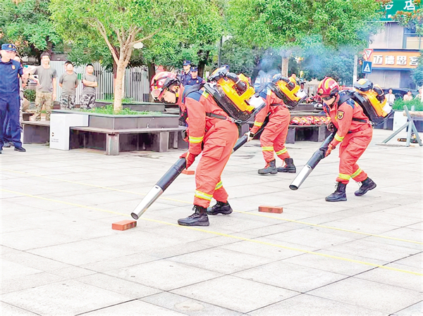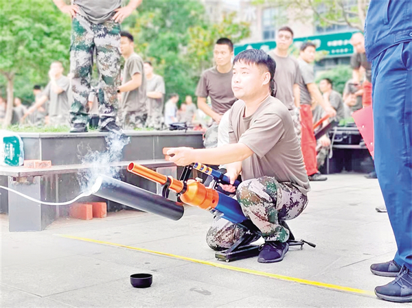 邱凱介紹,該鎮應急救援隊由鎮級救援隊、15個村級救援分隊和水上應急救援隊組成,共17支隊伍278人。“為了這次比武,后柳鎮收到通知后就積極籌備。兩個月里,參賽隊員除了到縣消防救援大隊接受專業培訓外,平時也堅持每周訓練。”邱凱指著場邊的灑水車說,“這輛灑水車是鎮上自己改造的,不僅成本低,也更適合鎮情實際,五層樓以上的救援也能覆蓋。
