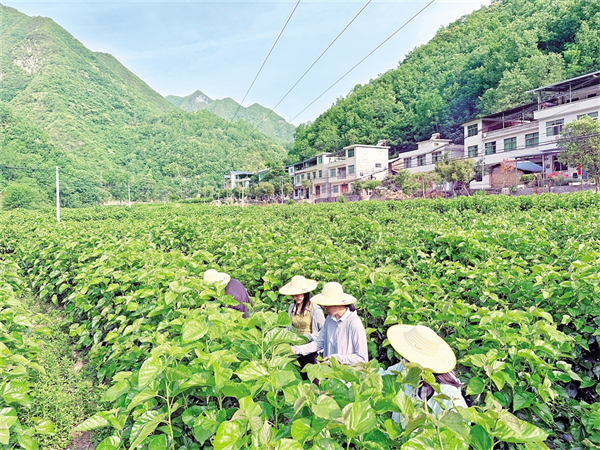 5月的旬陽市麻坪鎮,山嵐輕拂、萬物競發。當記者滿懷期許地步入這個旬陽西北部的產業重鎮時,只見麻坪河兩岸的千畝煙田里,青翠的煙苗整齊列隊,農人們躬身移栽,汗水滴落處皆是希望。海拔千米的五龍山茶園內,茶簍在村婦的腰間輕晃,靈巧的指尖在葉片間翻飛,嫩芽與笑語在山間回蕩。李家河村的蠶室里,春蠶沙沙食桑,細密的韻律如致富歌謠在耳畔響起,蠶農們穿梭桑園,指尖捻出絲路綿長。