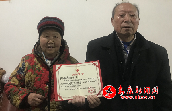 今年的疫情發(fā)生以來,他時時刻刻都在關(guān)注關(guān)心湖北的疫情,他吩咐子女們都堅守各自的工作崗位,不要操心他們,也不要回家去,他自己照顧體弱生病的老伴。今天一大早,他就拉著因腰椎手術(shù)后行動不靈便的老伴去政府大樓找到紅十字會辦公室,主動要求捐款,他說雖然沒有多少,但卻是兩位老人支持疫情防控的一點心意。