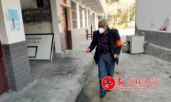 抗擊疫情刻不容緩,噴灑消毒液能有效防止新冠肺炎傳播,作為村上的防疫員,在消殺工作中有經(jīng)驗,他便主動請纓,擔(dān)起責(zé)任,按規(guī)定的藥液比例現(xiàn)場配置藥劑,背上消毒壺一家一戶的仔細噴灑消毒水,雖然天氣寒冷,一天下來,他銀色的頭發(fā)上汗水滴滴下落,但他認為這樣很有意義。全村消毒一遍需要兩天時間,盡管任務(wù)重,耗時長,但他從沒有中途放棄過,也沒有抱怨過,更沒有收取一分報酬,像這樣消殺,至目前,他一共進行了三次。每當(dāng)有返村人員回來時,他也是主動上門房前屋后、屋里屋外的進行消殺。村黨支部書記劉道金多次勸他讓年輕人干這種體力活,他嚴肅的說:“一個黨員,一面旗幟,我這面旗幟永遠不能倒!”