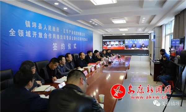 本網訊(通訊員 何丹)為奮力奪取疫情防控與經濟發展“雙勝利”,深入推進開放招商工作,擴大開放水平,增強發展動力。3月20日,鎮坪縣人民政府與泛華產業投資有限公司舉行了全領域開放合作暨縣企融合發展合作共建協議簽約活動。縣委副書記、縣長李平和泛華集團董事長楊天舉分別在鎮坪和北京出席視頻洽談,并代表雙方簽約。縣委常委、副縣長涂世昌主持視頻簽約儀式。